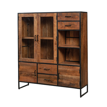Credenza Vetrina in Legno Massello di Mango Struttura in Ferro Stile Industrial