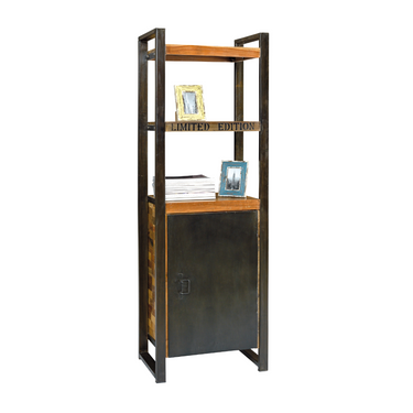 Libreria 1 Anta in Legno Massello Colore Naturale Struttura in Ferro Nero Stile Industrial