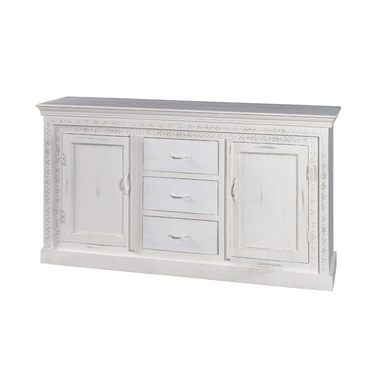 Madia 2 Ante 3 Cassetti in Legno Massello di Mango Colore Bianco Decapato