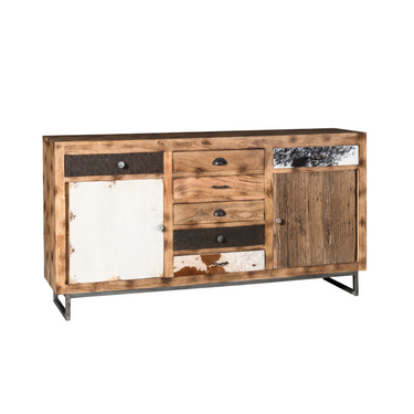 Madia in Legno Massello di Mango Multicolore 2 Ante 7 Cassetti Stile Industrial