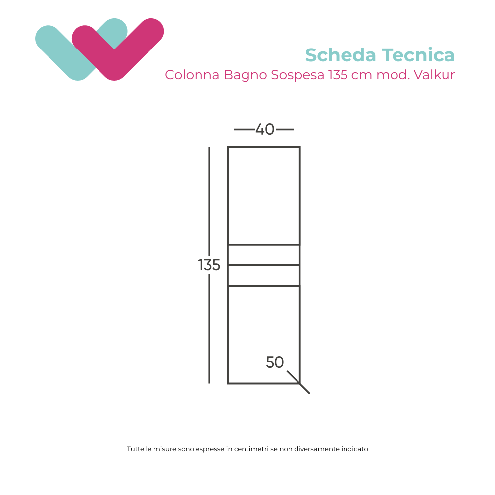 Colonna Bagno Sospesa 135 cm in Colore Antracite - Valkur