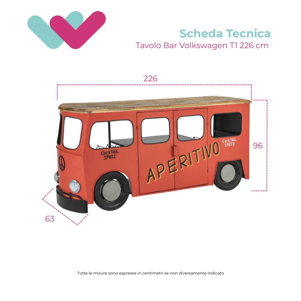 Bancone Bar Riproduzione "Volkswagen Transporter T1" in Legno di Mango e Metallo Rosso Stile Industrial: ispirato al celebre design del Volkswagen Transporter, questo bancone è una perfetta fusione di estetica vintage e funzionalità moderna. La struttura in metallo garantisce solidità e durabilità, mentre il legno di mango aggiunge un tocco naturale e caldo, creando un contrasto affascinante e raffinato. Il nostro bancone bar è perfetto per creare un'atmosfera accogliente e distintiva. Le linee pulite e il design industriale rendono questo mobile un pezzo d'arredo versatile, adatto a diversi ambienti, dal soggiorno alla cucina, fino ai locali commerciali come bar e ristoranti. La riproduzione dettagliata del Volkswagen Transporter conferisce un carattere unico e nostalgico, facendo di questo bancone un vero e proprio punto focale. Scegli il nostro bancone bar riproduzione Volkswagen Transporter T1 in legno di mango e metallo per trasformare il tuo spazio con lo stile industriale che desideri.