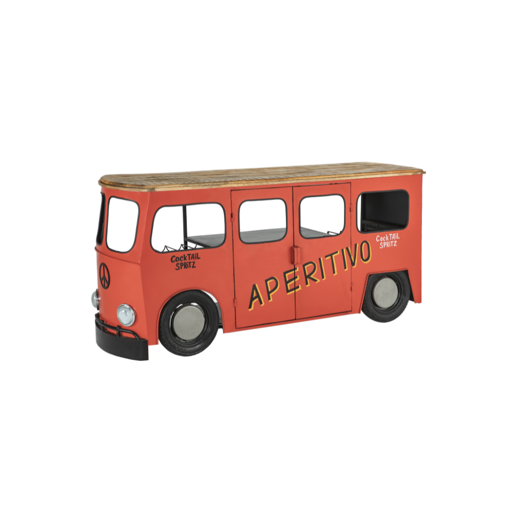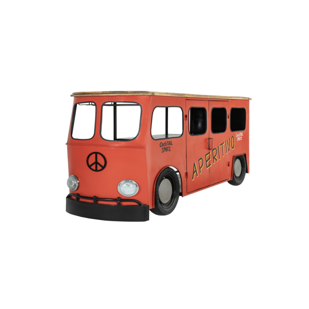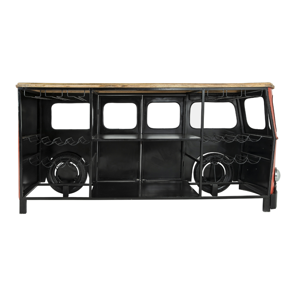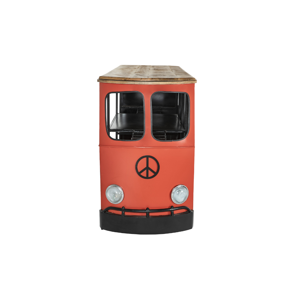 Bancone Bar Riproduzione Volkswagen Transporter in Metallo Rosso e Legno di Mango Stile Industrial