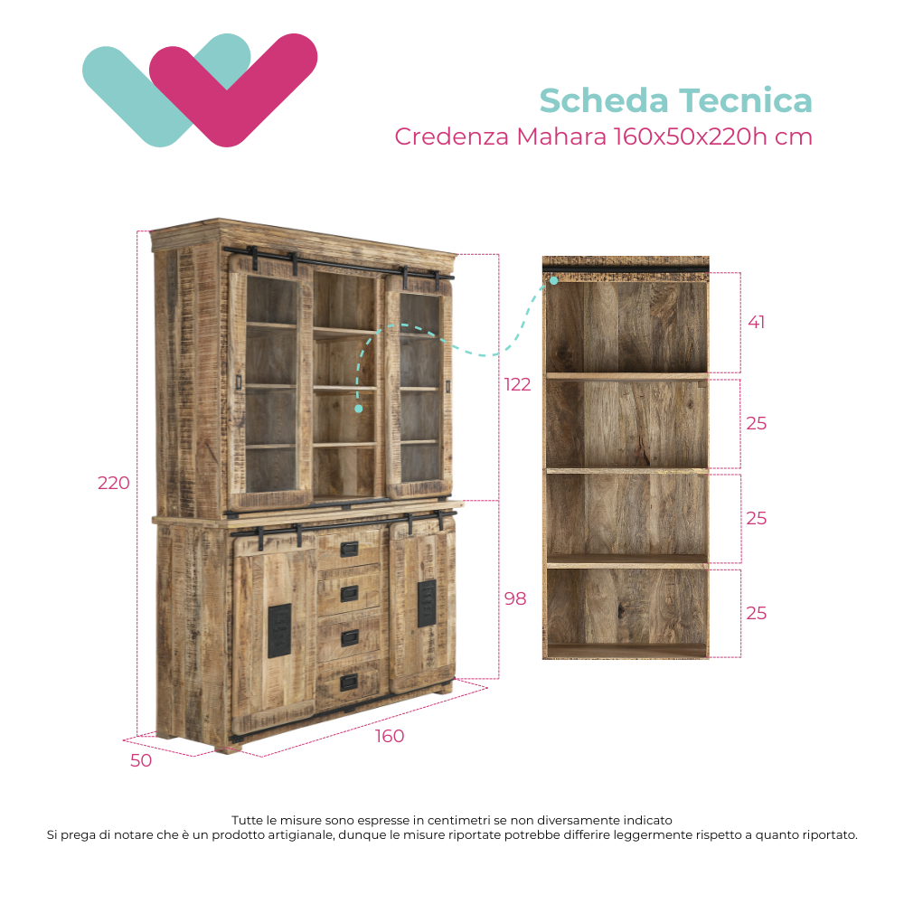 Si prega di notare che il mobile Mahara è un prodotto artigianale. Pertanto le misure potrebbero talvolta differire rispetto a quanto riportato nella scheda tecnica