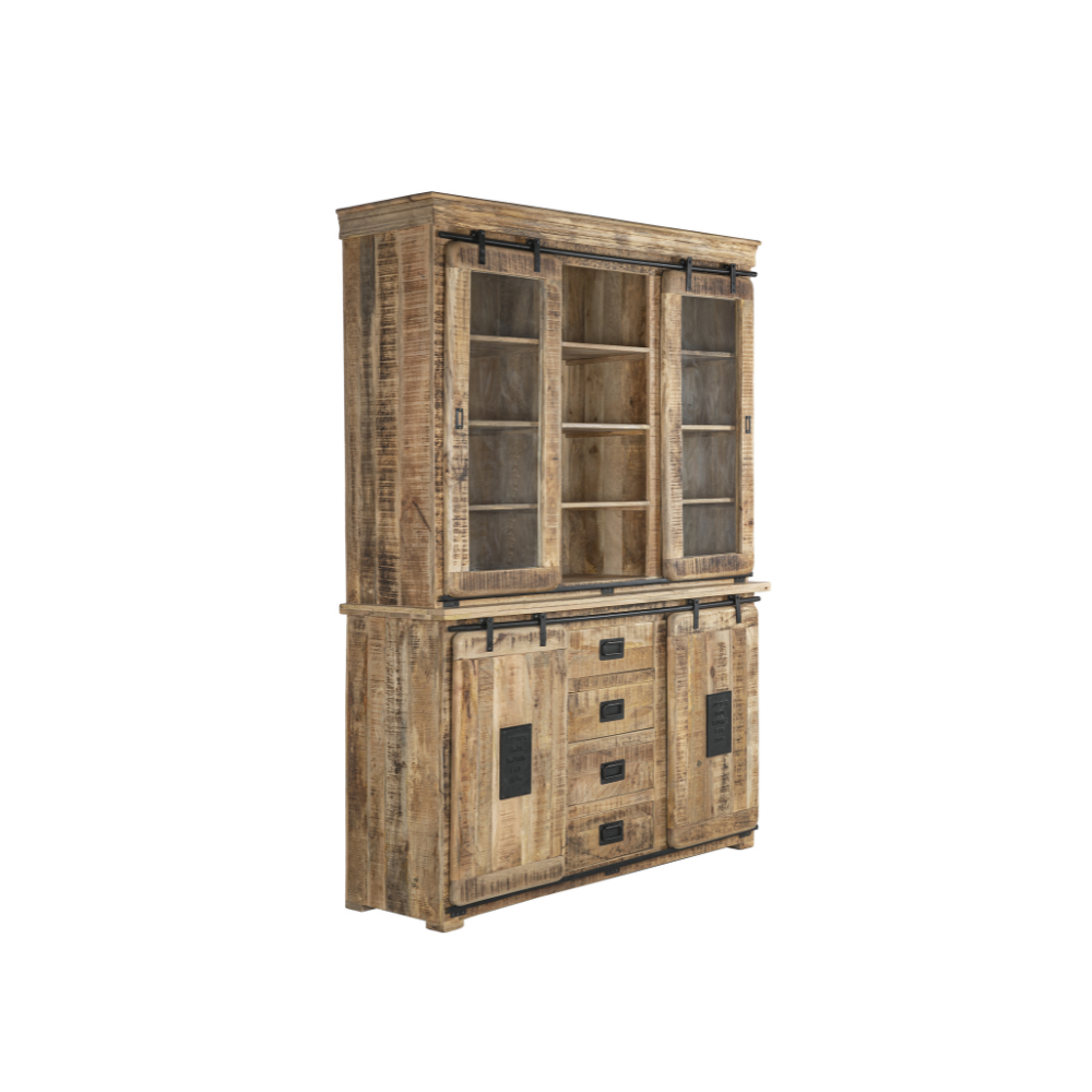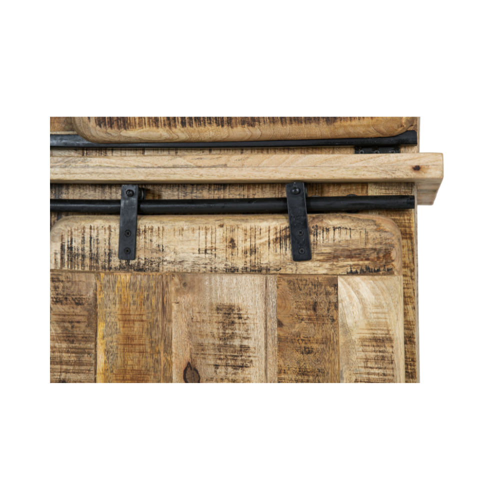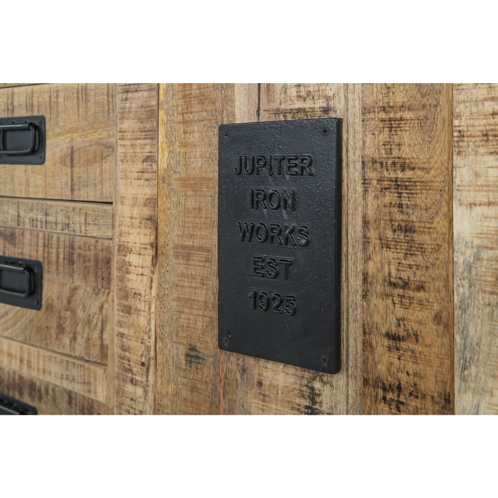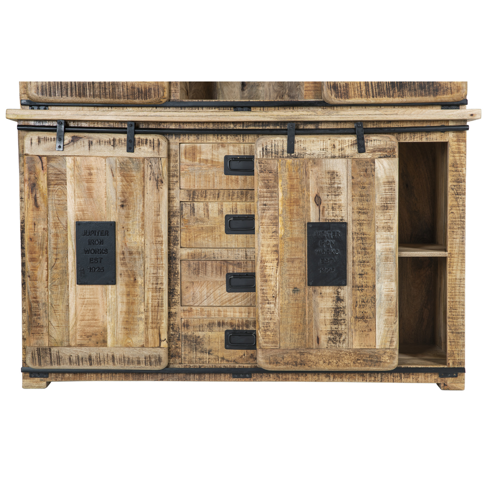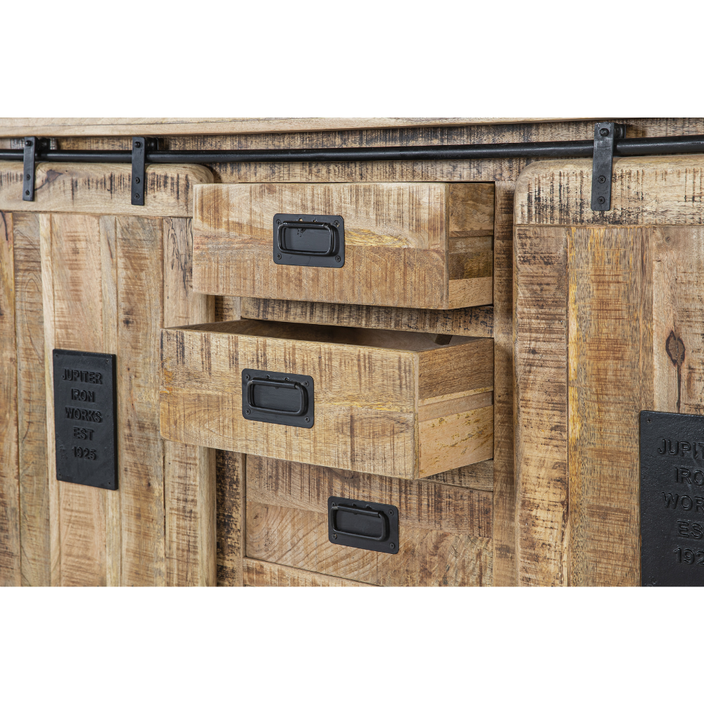 Credenza Doppio Corpo in Legno di Mango con 4 Cassetti e 2 Ante Scorrevoli Stile Industrial