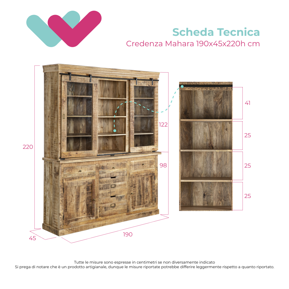 Si prega di notare che il mobile Mahara è un prodotto artigianale. Pertanto le misure potrebbero talvolta differire rispetto a quanto riportato nella scheda tecnica