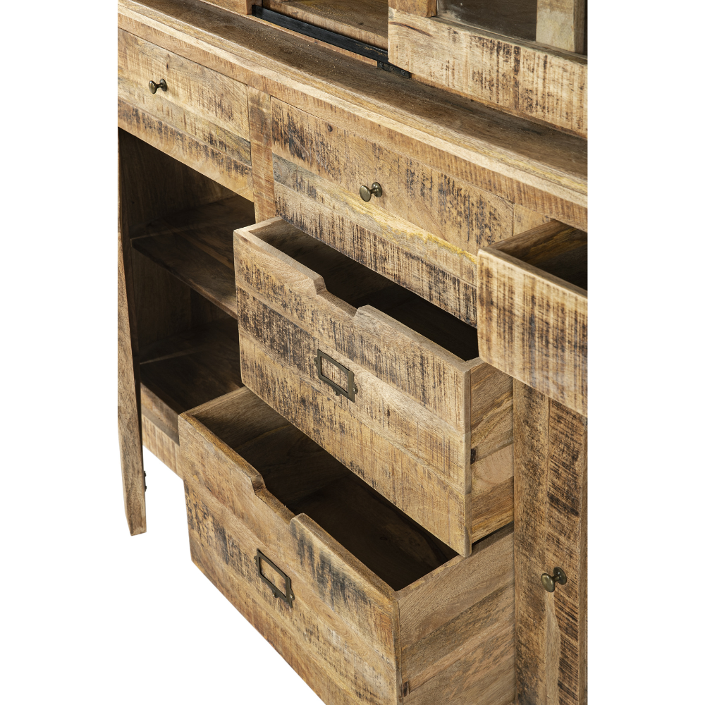 Credenza Vetrina Doppio Corpo in Legno Massello Stile Rustico con Ante Scorrevoli