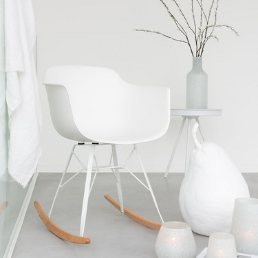 Poltrona a Dondolo Stile Scandinavo in Polipropilene e Alluminio Colore Bianco