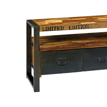 Mobile Porta Tv 3 Cassetti in Ferro e Ripiani in Legno Massello Stile Industrial