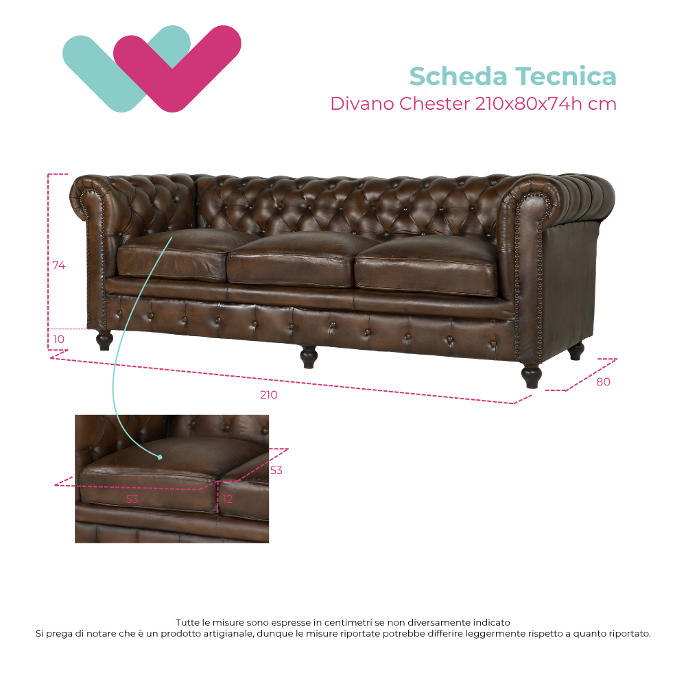 L'eleganza iconica del design Chesterfield incontra il fascino del legno di mango massello. Questo divano a 3 posti è la sintesi perfetta di eleganza intramontabile e solidità. Il rivestimento in vera pelle marrone, offre un comfort senza tempo, mentre la struttura a vista in legno di mango garantisce robustezza e rende ogni divano un pezzo unico grazie alle sue venature naturali. Un vero arredo di carattere, destinato a diventare il cuore del tuo living.