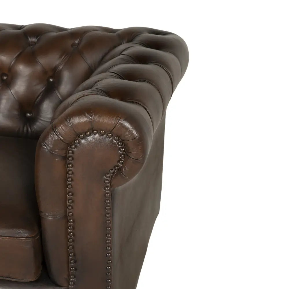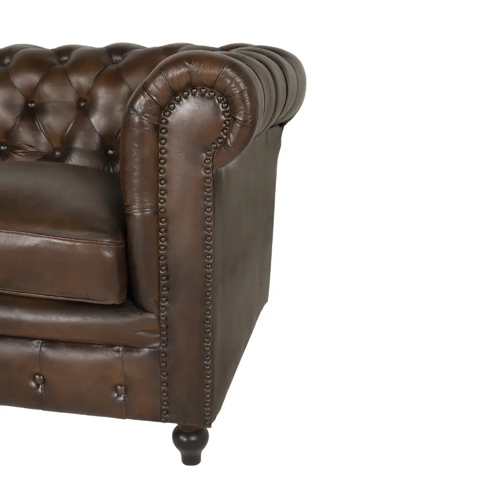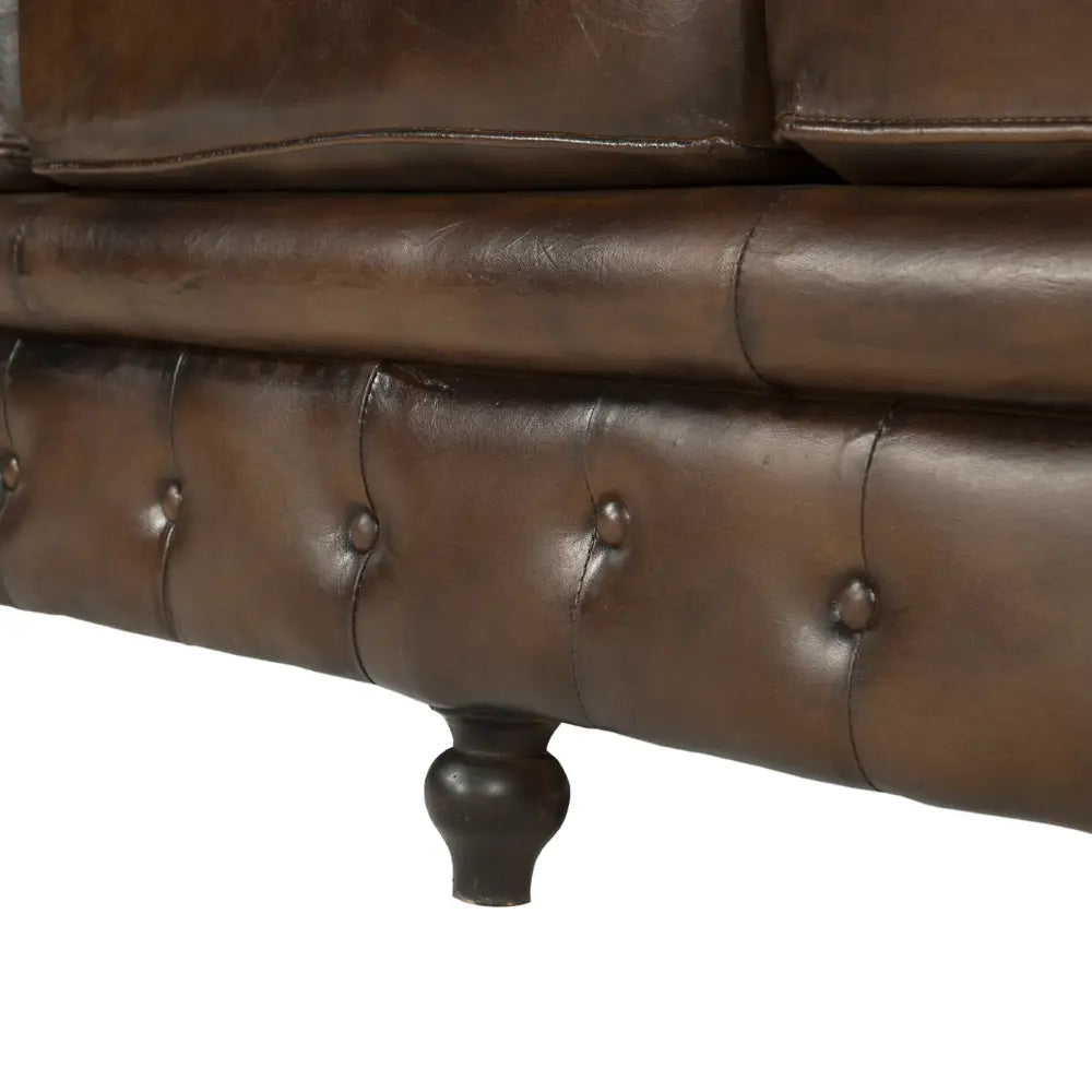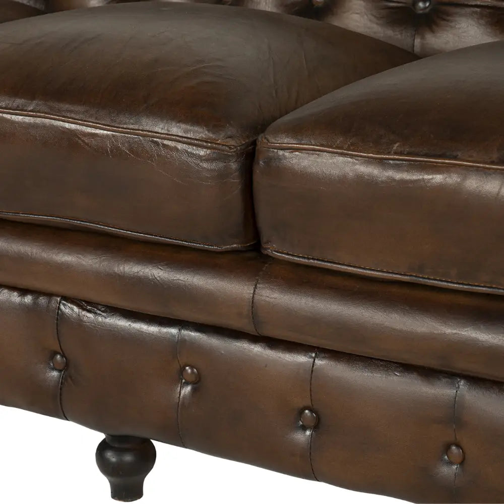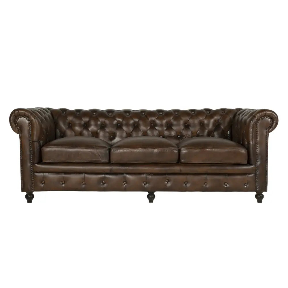 Divano 3 posti Chesterfield in Pelle Marrone e Struttura in Mango 210 cm - Viron