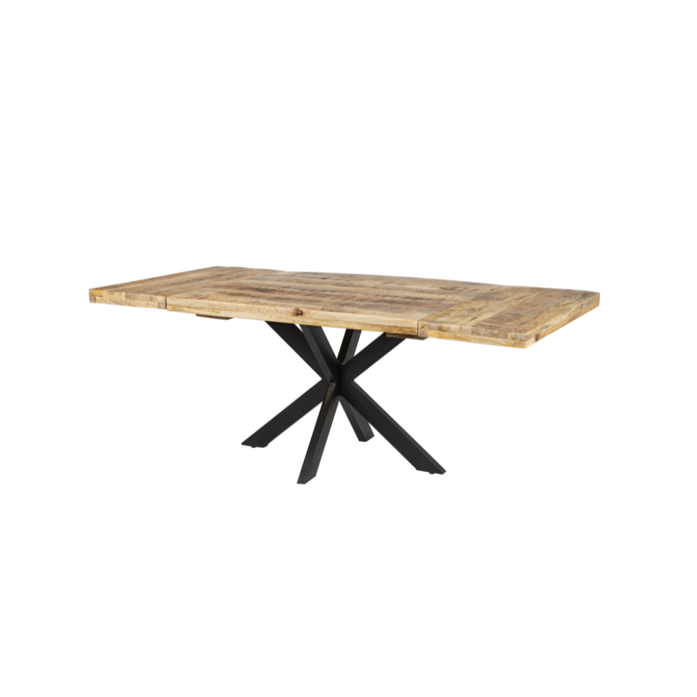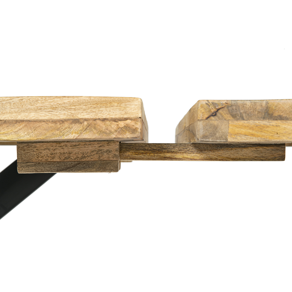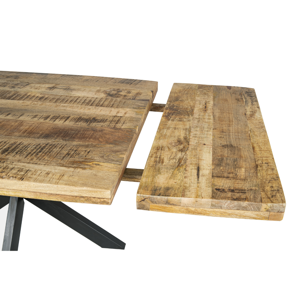 Tavolo Allungabile in Legno di Mango Colore Naturale con Gambe in Ferro 100x120-200 cm mod. Natural: con il suo design moderno e la sua costruzione di alta qualità, questo tavolo si distingue per la sua versatilità e bellezza. Realizzato in legno di mango naturale, questo tavolo allungabile aggiunge calore e carattere a qualsiasi ambiente. Il legno di mango è noto per la sua durabilità e bellezza naturale, rendendo ogni tavolo unico nel suo genere. Le gambe in ferro nero conferiscono al tavolo una solida stabilità e dello stile industriale contemporaneo. Con i suoi 120 cm di lunghezza, estendibili fino a 200 cm con le apposite prolunghe fornite in dotazione, questo tavolo offre abbondante spazio per ospitare comodamente fino a otto persone. La sua funzione allungabile consente di adattarlo alle diverse esigenze, ideale per cene con famiglia o amici. Sarà sufficiente inserire le prolunghe all'estremità del tavolo per rivelare una superficie più ampia e creare l'ambiente perfetto per riunioni conviviali.