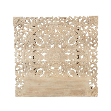 Testata Letto in Legno Massello di Mango Intarsiato Colore Bianco Decapato: questo pezzo unico è realizzato con legno massello di mango, noto per la sua durabilità e la sua bellezza naturale. Ogni testata è meticolosamente intarsiata a mano, creando un design complesso e affascinante che cattura l'attenzione e diventa il punto focale della tua camera da letto. Il colore bianco decapato dona alla testata letto un aspetto anticato e vissuto, perfetto per un arredamento elegante e sofisticato. La finitura decapata esalta le intricate intarsiature del legno massello di mango, creando un effetto visivo straordinario che aggiunge profondità e carattere al pezzo. Le dimensioni generose e la solida costruzione in legno massello di mango assicurano che questa testata sia tanto funzionale quanto estetica, offrendo un supporto robusto per il tuo letto e un look inconfondibile.