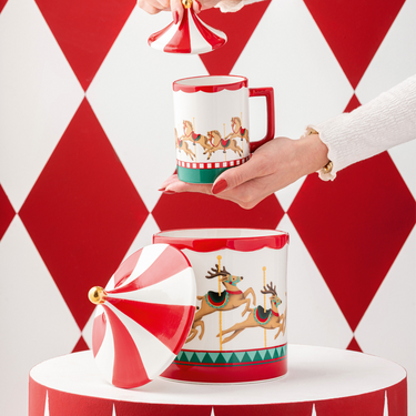 Contenitore Porta Biscotti Natalizio in Porcellana Decorata Circo Ø 15 cm - Circo