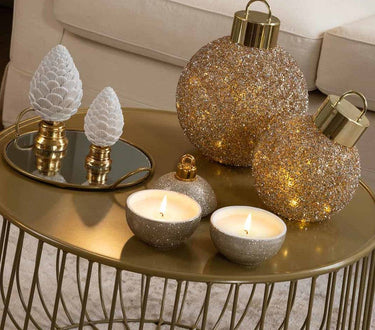 Candela Profumata in Sfera Glitterata Colore Oro Ø 20 cm