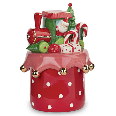 Contenitore Portabiscotti Biscottiera Natalizia in Ceramica Colorata con Coperchio