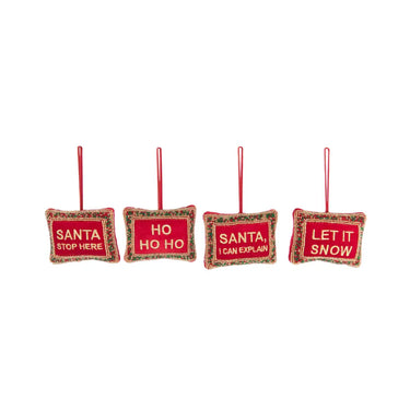 Set 4 Pendenti Natalizi in Velluto Rosso con Scritte e Decori in Perline - The Christmas Show