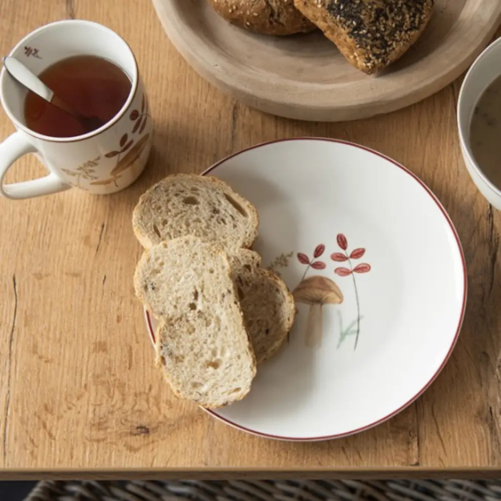 Piatto per la Colazione Ø 20 cm in Porcellana Decoro Funghi Autunno