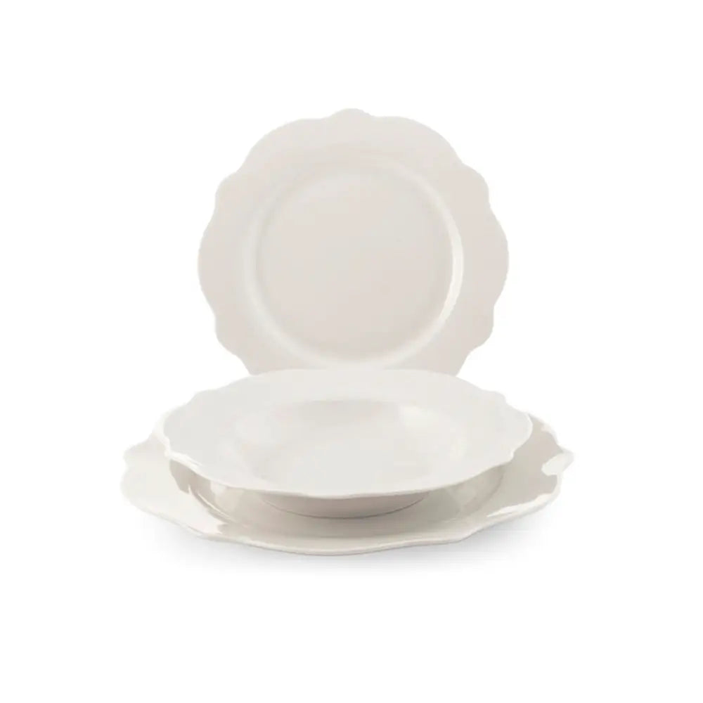 Servizio 18 Piatti in Porcellana Colore Bianco Festonati - H&H