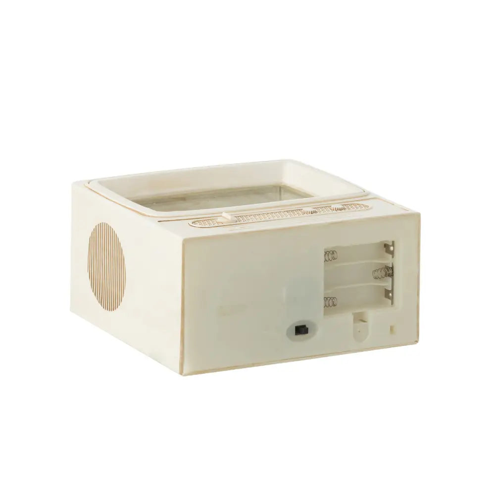 La magia del Natale va in onda in questa originale boule de neige natalizia a forma di televisione vintage. Parte della collezione "The Christmas Show", questo oggetto in poliresina bianca si illumina e crea da solo un magico vortice di neve. È una decorazione unica e un'idea regalo piena di fascino, perfetta per creare un'atmosfera da fiaba. (Funzionamento a pile, non incluse).
