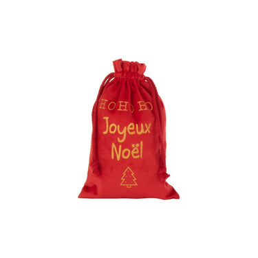 Sacco di Natale in Velluto Colore Rosso 28 cm Small: arricchisci la tua casa durante le feste natalizie con l’elegante Sacco di Natale in velluto colore rosso. Questo splendido sacco, disponibile in tre diverse varianti, ciascuna con una scritta unica, è perfetto per dare risalto ai regali sotto l'albero. Le tre scritte disponibili offrono un modo divertente ed elegante di celebrare il Natale: scegli tra il classico "Ne pas ouvrir avant Noël", il festoso "Ho Ho Ho Joyeux Noël" o il simpatico "Cher Père Noël, tu peux laisser ta carte de crédit sous le sapin". Ogni variante si adatta perfettamente all'atmosfera natalizia. Scegli la frase che più ti piace e festeggia al meglio il tuo Natale.