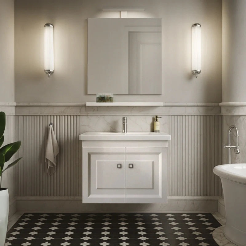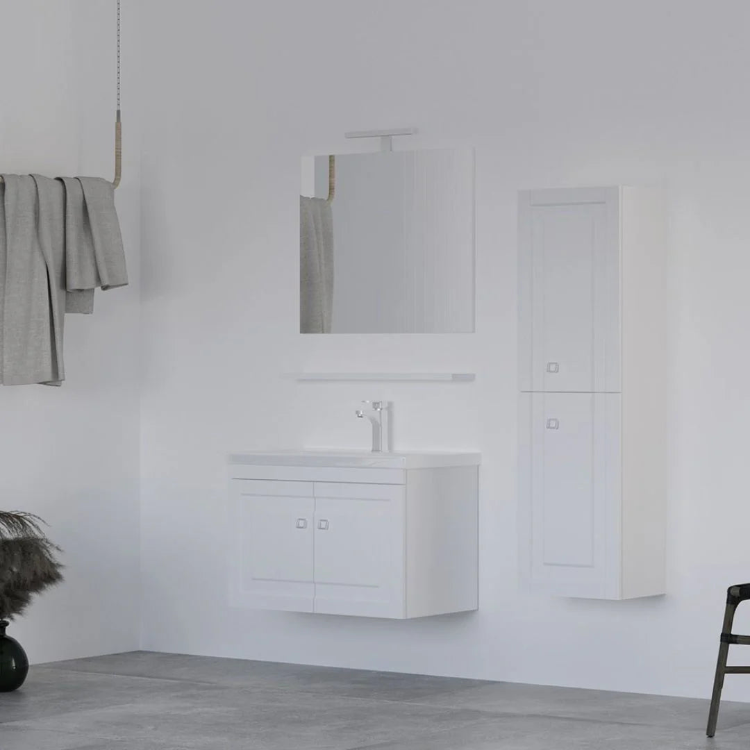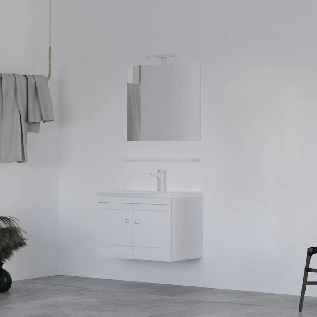 TEST - Mobile Bagno Sospeso 65 cm Colore Bianco con Lavabo e Specchio Contenitore - Maria