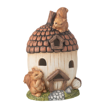 Luce Led Decorativa Autunnale Casetta Ghianda con Scoiattoli