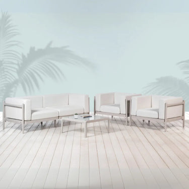 Set Relax da Esterno in Polipropilene Colore Bianco – Island: trasforma il tuo giardino, terrazzo o patio in un'oasi di stile e comfort con questo raffinato set relax da esterno in polipropilene bianco. Il design lineare e contemporaneo, esaltato dalla luminosità del bianco, si adatta perfettamente a qualsiasi ambiente esterno, creando un'atmosfera accogliente e invitante. Il set è composto da un divano 3 posti spazioso e confortevole, due poltrone dal design ergonomico e un tavolino quadrato che diventa il fulcro dell'attenzione grazie alla sua elegante decorazione effetto foglia, un dettaglio che richiama la bellezza della natura delle isole tropicali. I cuscini, rivestiti in tessuto idrorepellente, sono pensati per resistere alle intemperie e garantire un comfort duraturo, permettendoti di goderti appieno i tuoi momenti di relax all'aria aperta. Questo set non è solo un arredo, ma un vero e proprio invito al benessere e alla convivialità, ideale per chi desidera creare uno spazio esterno elegante, funzionale e accogliente per ricevere i propri ospiti.