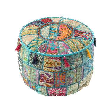 Pouf Rotondo Ricamato con Nappine Stile Etnico Sfoderabile Ø 40 cm