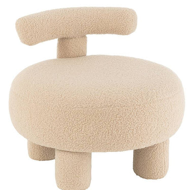 Poltroncina Pouf Rotondo con Schienale in Lana Sintetica Rasata Colore Beige
