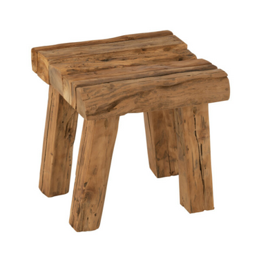 Sgabello Basso Stile Rustico in Legno di Teak Colore Marrone h 35 cm