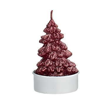 Set 6 T-Light Albero di Natale Colore Bordeaux h 6 cm