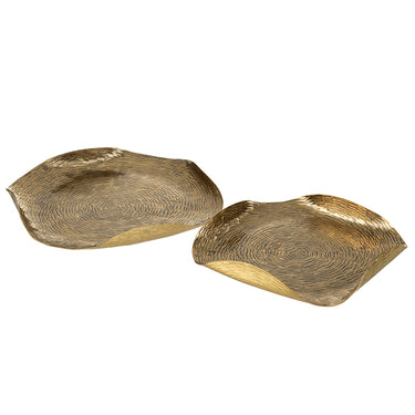 Set 2 Vassoi Centrotavola Rotondi Bordo Ondulato in Metallo Colore Oro