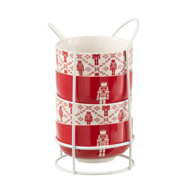 Set 4 Ciotole Natalizie Colazione in Ceramica con Supporto in Metallo