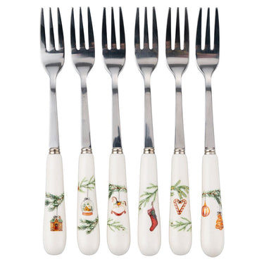 Set 6 Forchettine Natalizie in Acciaio Inox e Ceramica Rametto - Villa D'Este