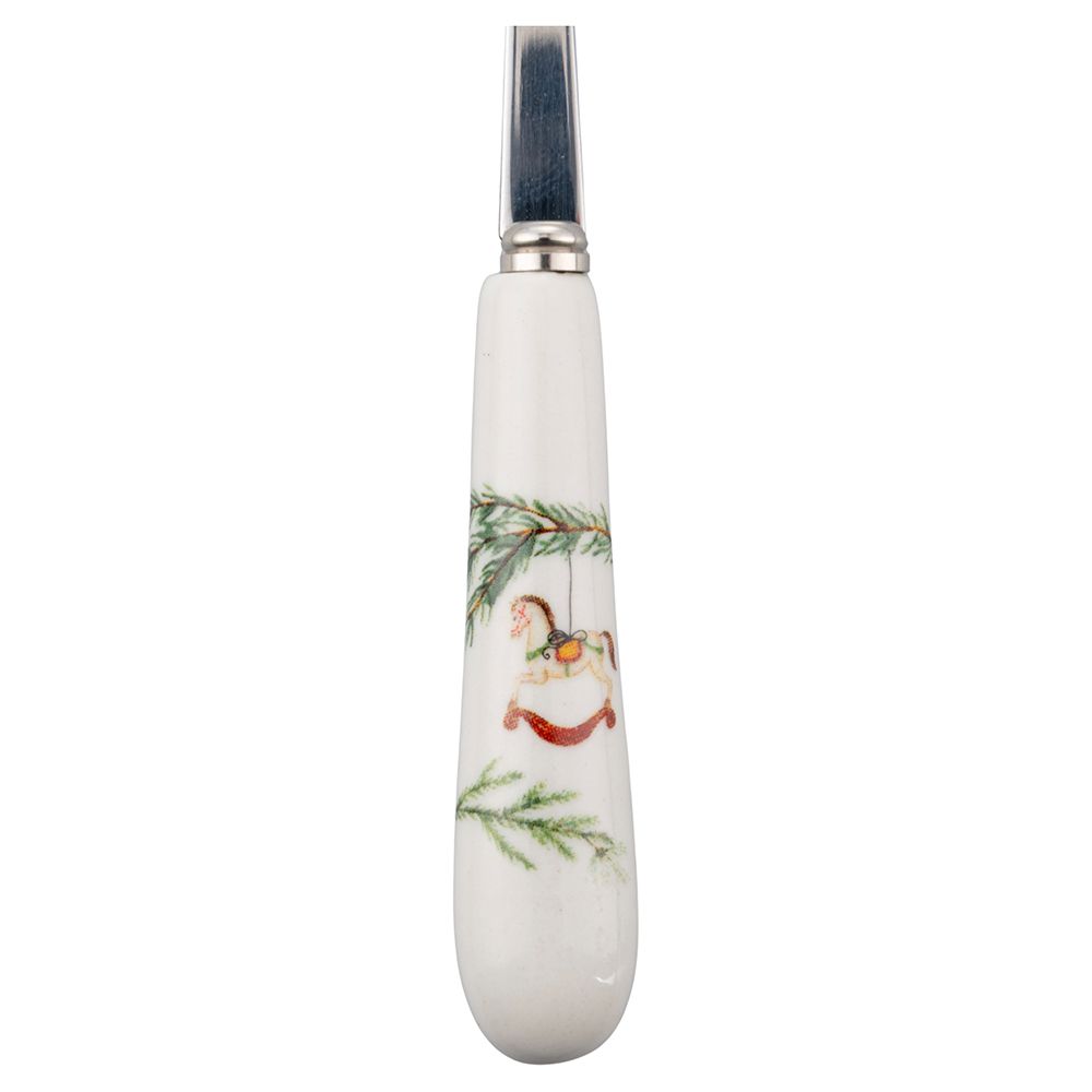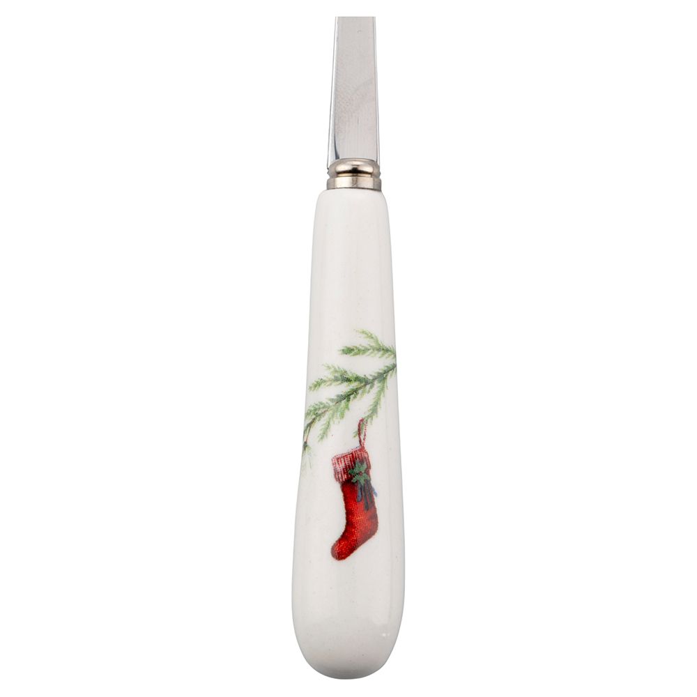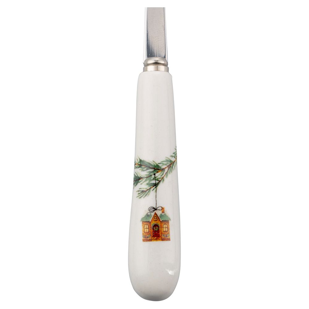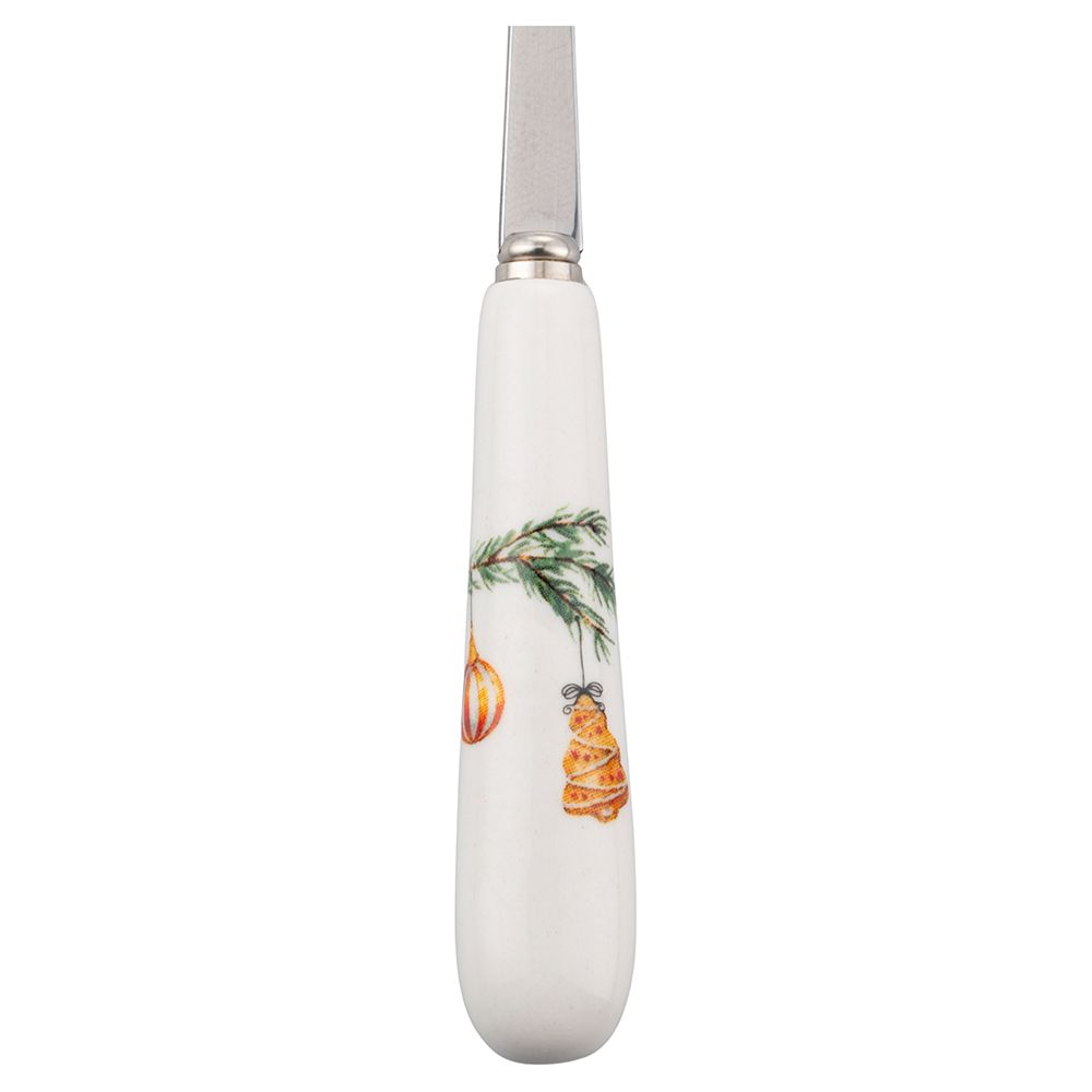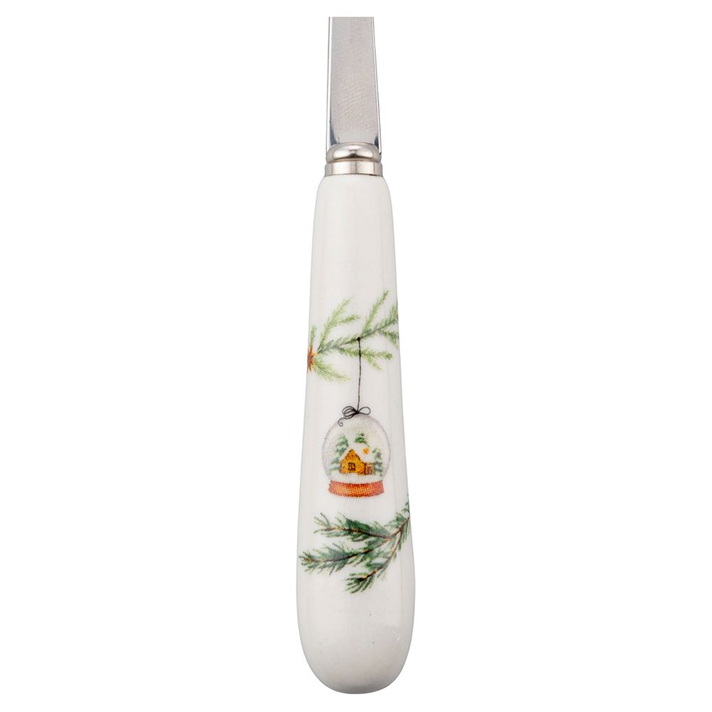 Caratterizzate da un’elegante impugnatura in ceramica bianca, queste posate presentano raffinati decori natalizi: aghi di pino intrecciati a palline, calze e pacchi regalo, per un look che unisce tradizione e design moderno. La struttura è realizzata in robusto acciaio inox 18/0 color silver, con uno spessore di 1,8 mm che garantisce resistenza e qualità nel tempo.