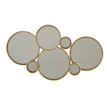 Specchio da Parete Decorazione Murale a 6 Cerchi in Metallo Colore Oro