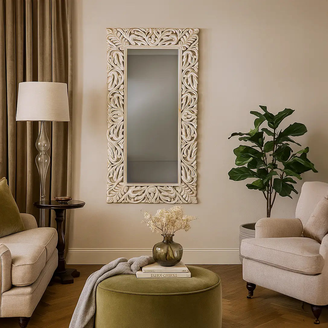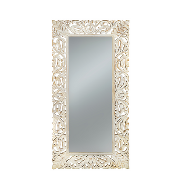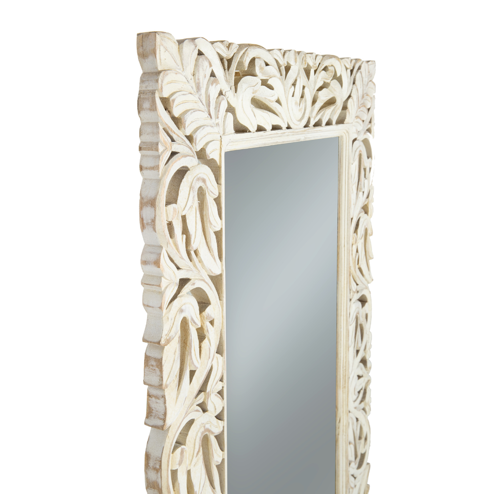 Specchio da Interno 60x120 cm con Cornice Decapata Bianca in Legno Massello di Mango