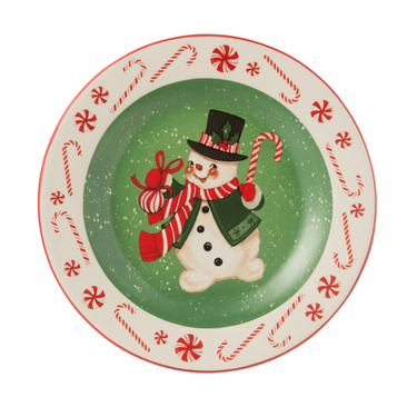 Piatto Natalizio da Portata Rotondo in Ceramica - Pupazzo di Neve