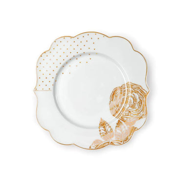 Piattino Frutta in Porcellana Bianca Decorato Royal White – Pip Studio: questo piatto piano della collezione "Royal White" di Pip Studio mostra un design curato e particolare. Realizzato in porcellana, ha una forma ondulata sul bordo, elemento distintivo che lo contraddistingue. La porcellana offre una superficie liscia e luminosa, esaltando le decorazioni mentre il colore di base bianco è ideale per mettere in risalto la mise en place. Un complemento pensato per trasformare ogni portata in un'occasione speciale, adattabile sia a contesti informali che a momenti di convivialità con la famiglia. Non solo funzionalità, ma un'espressione di gusto per arricchire la tavola. La cura dei dettagli e la qualità dei materiali rendono questo piatto un elemento distintivo, ideale per chi apprezza l'armonia tra arte classica e semplicità