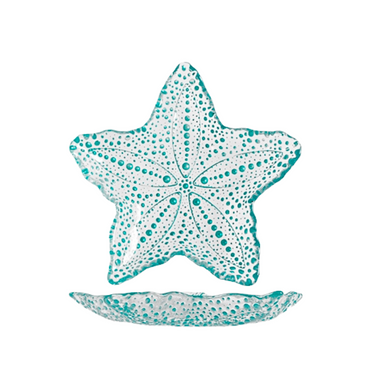 Porta un soffio d'oceano sulla tua tavola e nei tuoi spazi con questo magnifico piatto a forma di stella marina. Realizzato in vetro, questo piatto decorativo cattura la luce in un gioco di sfumature azzurre che evocano le acque cristalline e i fondali marini.