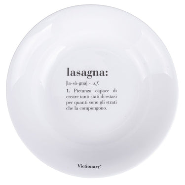 Set 6 Piatti Fondi Colore Bianco Lasagna Victionary – Villa D’Este: porta l'allegria della cucina italiana sulla tua tavola con il Set 6 Piatti fondi Victionary di Villa D'Este. Questi piatti, dal design moderno, sono un vero e proprio tributo alla tradizione culinaria italiana, le frasi spiritose incise celebrano le pietanze più amate. I piatti Victionary si distinguono per il loro stile unico, caratterizzato da un elegante colore bianco che risalta le scritte simpatiche e audaci di ogni piatto. Realizzati in vetro opalino, questi 6 piatti fondi sono resistenti, leggeri e facili da pulire, perfetti per l'uso quotidiano. Con la linea Victionary, Villa D’Este crea il suo personale vocabolario attribuendo a oggetti di uso comune un significato speciale intriso di creatività e vita quotidiana. Ogni definizione, originale ed esilarante, resta inevitabilmente impressa nella mente, aggiudicandosi il potere di strappare un sorriso ogni volta che capiterà di leggerla, un modo per celebrare la passione per il cibo e la convivialità.