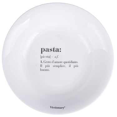 Set 6 Piatti Fondi Colore Bianco Pasta Victionary – Villa D’Este: porta l'allegria della cucina italiana sulla tua tavola con il Set 6 Piatti fondi Victionary di Villa D'Este. Questi piatti, dal design moderno, sono un vero e proprio tributo alla tradizione culinaria italiana, le frasi spiritose incise celebrano le pietanze più amate. I piatti Victionary si distinguono per il loro stile unico, caratterizzato da un elegante colore bianco che risalta le scritte simpatiche e audaci di ogni piatto. Realizzati in vetro opalino, questi 6 piatti fondi sono resistenti, leggeri e facili da pulire, perfetti per l'uso quotidiano. Con la linea Victionary, Villa D’Este crea il suo personale vocabolario attribuendo a oggetti di uso comune un significato speciale intriso di creatività e vita quotidiana. Ogni definizione, originale ed esilarante, resta inevitabilmente impressa nella mente, aggiudicandosi il potere di strappare un sorriso ogni volta che capiterà di leggerla, un modo per celebrare la passione per il cibo e la convivialità.