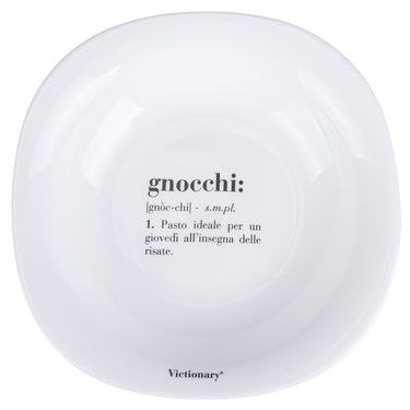 Set 6 Piatti Fondi Quadrati Colore Bianco Gnocchi Victionary – Villa D’Este: Rendi più divertente la tua esperienza culinaria con questo set di 6 piatti fondi quadrati in vetro opalino bianco Victionary di Villa D'Este. Questi piatti uniscono un design moderno a un simpatico omaggio alla cucina italiana, con una frase divertente su alcuni dei primi piatti più amati. La forma quadrata dei piatti regala uno stile contemporaneo alla mise en place, mentre il vetro opalino di colore bianco dona brillantezza e resistenza, rendendoli adatti sia all’ uso quotidiano che per altre occasioni, dalla cena con amici al pranzo in famiglia. I piatti della linea Victionary sono decorati con una frase dedicata a un classico primo piatto italiano, per un'esperienza culinaria all'insegna del buonumore. Con la linea Victionary, Villa D’Este crea il suo personale vocabolario attribuendo a oggetti di uso comune un significato speciale intriso di creatività e vita quotidiana. Ogni definizione, originale ed esilarante, resta inevitabilmente impressa nella mente, aggiudicandosi il potere di strappare un sorriso ogni volta che capiterà di leggerla.