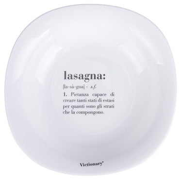 Set 6 Piatti Fondi Quadrati Colore Bianco Lasagna Victionary – Villa D’Este: Rendi più divertente la tua esperienza culinaria con questo set di 6 piatti fondi quadrati in vetro opalino bianco Victionary di Villa D'Este. Questi piatti uniscono un design moderno a un simpatico omaggio alla cucina italiana, con una frase divertente su alcuni dei primi piatti più amati. La forma quadrata dei piatti regala uno stile contemporaneo alla mise en place, mentre il vetro opalino di colore bianco dona brillantezza e resistenza, rendendoli adatti sia all’ uso quotidiano che per altre occasioni, dalla cena con amici al pranzo in famiglia. I piatti della linea Victionary sono decorati con una frase dedicata a un classico primo piatto italiano, per un'esperienza culinaria all'insegna del buonumore. Con la linea Victionary, Villa D’Este crea il suo personale vocabolario attribuendo a oggetti di uso comune un significato speciale intriso di creatività e vita quotidiana. Ogni definizione, originale ed esilarante, resta inevitabilmente impressa nella mente, aggiudicandosi il potere di strappare un sorriso ogni volta che capiterà di leggerla.