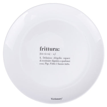 Set 6 Piatti Piani Colore Bianco Frittura Victionary – Villa D’Este: il set piatti piani in vetro opalino è la soluzione ideale per chi cerca piatti eleganti, resistenti e versatili. Realizzati in vetro opalino, questi piatti si distinguono per il loro design semplice e classico, perfetto per qualsiasi occasione. I piatti piani della line Victionary sono anche molto pratici e facili da pulire, sia a mano che in lavastoviglie. La loro leggerezza li rende facili da maneggiare e impilare, ottimizzando lo spazio nella tua cucina. Le incisioni divertenti impresse sul piatto regalano un sorriso a fine portata, questo set è un’idea simpatica per apparecchiare la tua tavola e stupire gli ospiti. Con la linea Victionary, Villa D’Este crea il suo personale vocabolario attribuendo a oggetti di uso comune un significato speciale intriso di creatività e vita quotidiana. Ogni definizione, originale ed esilarante, resta inevitabilmente impressa nella mente, aggiudicandosi il potere di strappare un sorriso ogni volta che capiterà di leggerla.