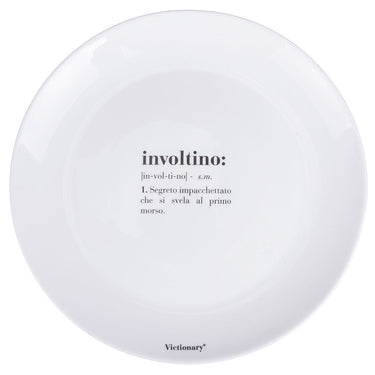 Set 6 Piatti Piani Colore Bianco Involtino Victionary – Villa D’Este: il set piatti piani Villa D’Este è la soluzione ideale per chi cerca un set di piatti elegante, resistente e versatile. Realizzati in vetro opalino, questi piatti si distinguono per il loro design semplice e classico, perfetto per qualsiasi occasione. Questi piatti sono anche molto pratici e facili da pulire, sia a mano che in lavastoviglie. La loro leggerezza li rende facili da maneggiare e impilare, ottimizzando lo spazio nella tua cucina. Le incisioni divertenti impresse sul piatto regalano un sorriso a fine portata, questo set è un’idea simpatica per apparecchiare la tua tavola e stupire gli ospiti. Con la linea Victionary, Villa D’Este crea il suo personale vocabolario attribuendo a oggetti di uso comune un significato speciale intriso di creatività e vita quotidiana. Ogni definizione, originale ed esilarante, resta inevitabilmente impressa nella mente, aggiudicandosi il potere di strappare un sorriso ogni volta che capiterà di leggerla.