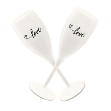 Set 2 Bicchieri Champagne 100 ml Colore Bianco - CHEERS No.1 Koziol: questo set di sei bicchieri da champagne della collezione Superglas di Koziol rappresenta l'unione perfetta di design sofisticato e praticità. Realizzati con un materiale innovativo e infrangibile, questi bicchieri opachi di colore bianco sono ideali per chi cerca robustezza e sicurezza. Il loro design elegante e moderno li rende perfetti per ogni occasione, dalle feste in giardino agli eventi a bordo piscina o per i tuoi eventi speciali. Un dettaglio distintivo del set è la scritta "Love", che aggiunge romanticismo e stile ad ogni sorso. Questi bicchieri sono la scelta ideale per chi desidera combinare estetica, funzionalità e sostenibilità.