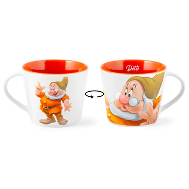 Tazza da Tè Biancaneve e i Sette Nani 420 ml in Porcellana Dotto: per tutti gli amanti delle fiabe classiche e dei personaggi più saggi, ecco la tazza di Dotto! Realizzata in new bone china, è tanto elegante quanto un trattato scientifico, ma molto più divertente da usare. Con una capacità di 420 ml, è perfetta per le tue pause di riflessione, magari accompagnate da un tè o un caffè latte. La decorazione mostra Dotto con il suo sguardo pensieroso e i suoi occhiali, pronto a condividere qualche perla di saggezza (o almeno, a farti sorridere). Pratica e funzionale, questa tazza è adatta sia al lavaggio in lavastoviglie che all'uso in microonde. Un modo perfetto per aggiungere un tocco di intelletto Disney alla tua giornata, con un sorriso.