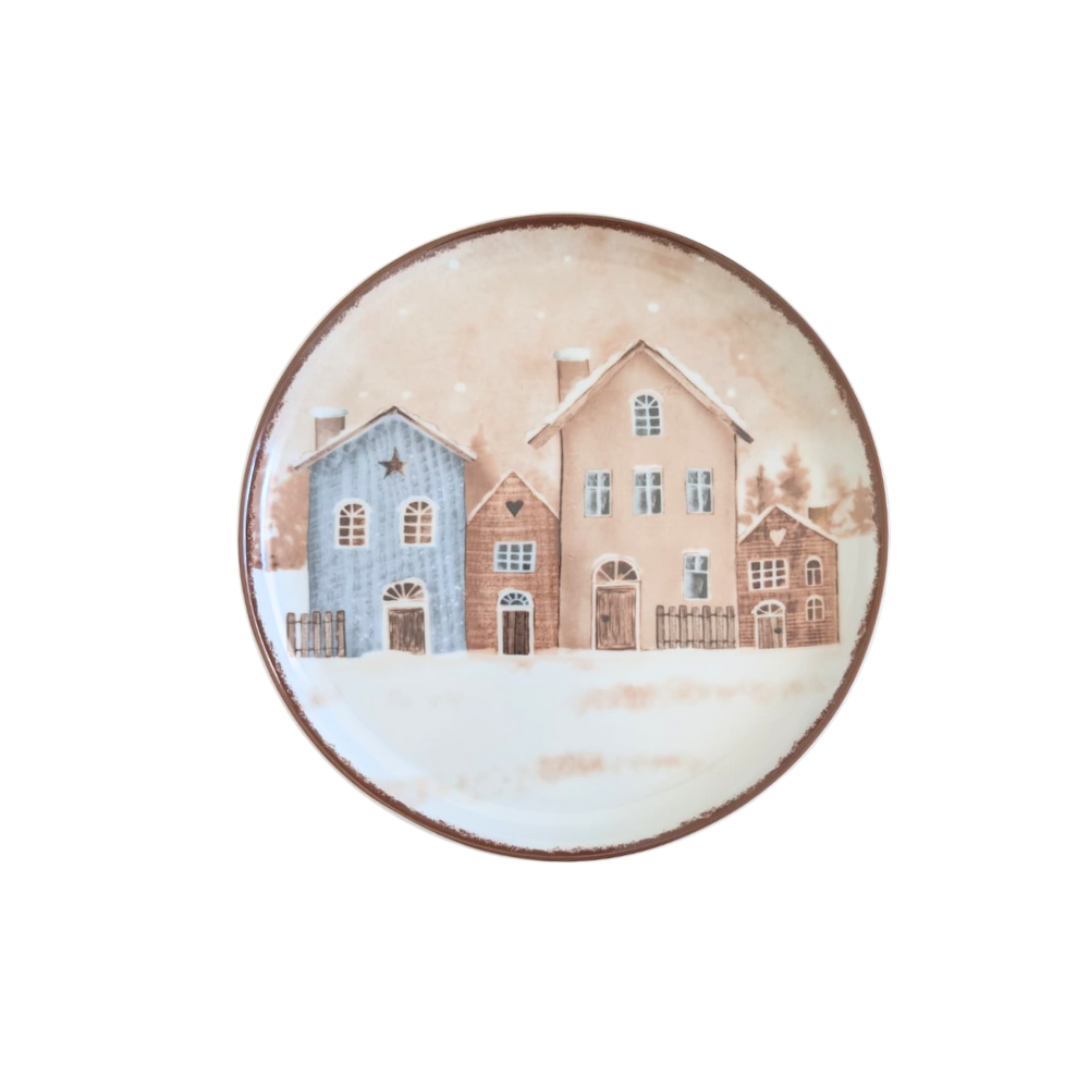 Piatto Panettone Natalizio Ø 27 cm in Porcellana Decoro Casa Innevata